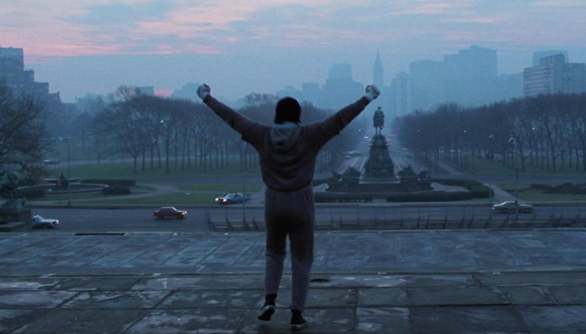 Rocky - The end of the training montage, Rocky at the top of the stairs he failed to climb at first (Photo: Amazon MGM Studios).
