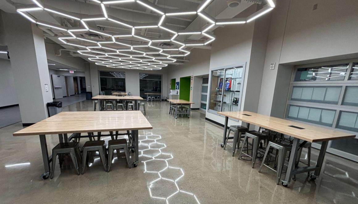 The tech lab has a large selection of seating, with tables and couches. The tech lab is a great place to study with friends or work on group projects.